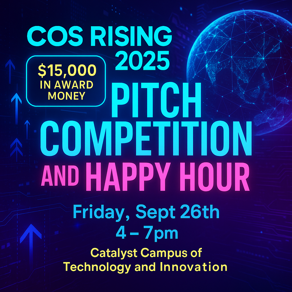 Get ready for an electrifying evening at the Pitch Competition and Happy Hour on Friday, September 26, from 4:00–7:00 PM at Catalyst Campus for Technology & Innovation. Big ideas, bold pitches, and $15K on the line!