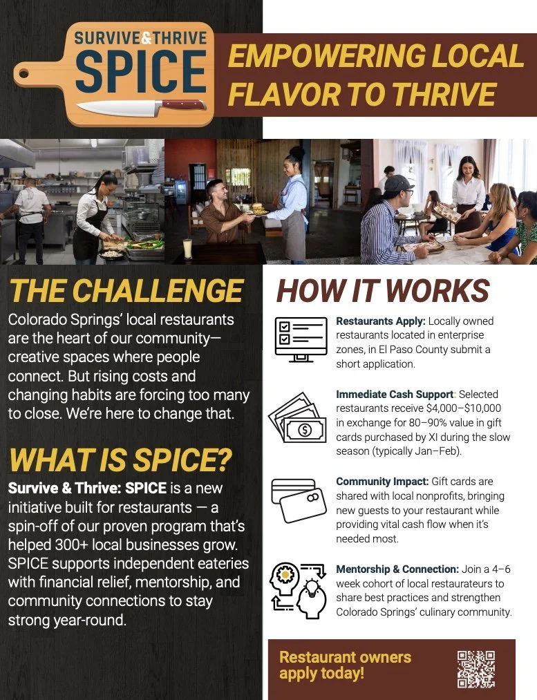Get ready to add some flavor to Colorado Springs’ culinary scene! The Survive & Thrive SPICE Program (Springs Independent Culinary Experiences) is cooking up a new way to support local restaurants and nonprofits through community-driven funding.